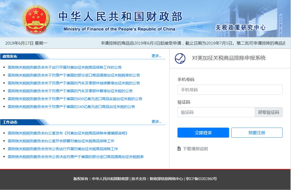 对美加征关税商品排除申报系统