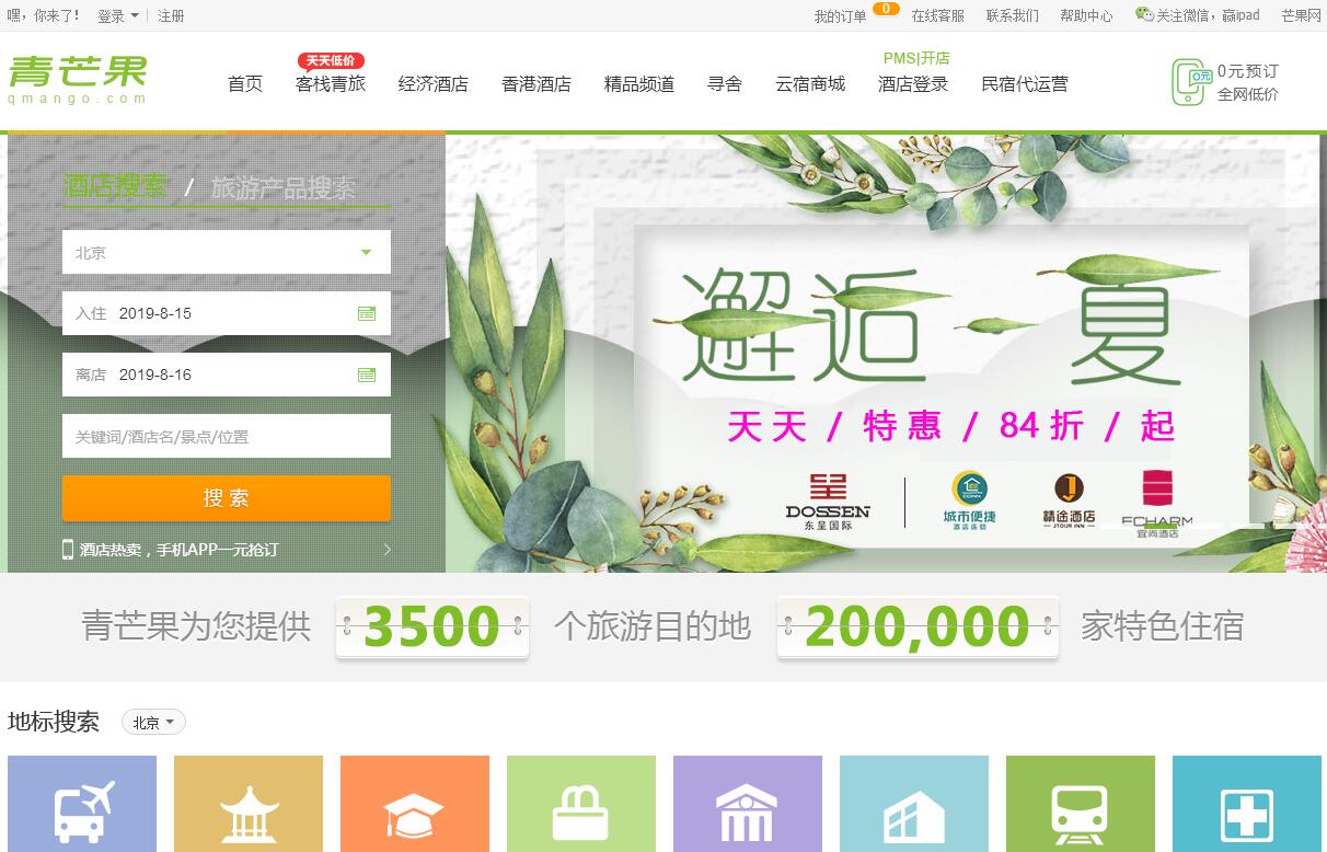 | 网站简介: 青芒果作为国内从事客栈民宿预订的网站,合作超过20万家精品民宿、特色客栈、青年旅舍、主题酒店,覆盖全国超过3000多个旅行目的地,已经为超过3000万游客提供“值得住”和“具有性价比”的住宿产品及服务,是热爱旅游的时尚人士喜爱的住宿预订平台。青芒果以独特的互联网思维整合民宿资源,倡导旅店拥有者发挥个性化经营手段,充分挖掘每家民宿的经营特色和亮点,从住宿环境、住宿体验、出游帮助等方面向入住的客户传递住宿及旅游目的地的地域文化、乡土民俗、人情关怀,让每一位住客都能深入感受到旅行和住宿相结合的独特魅力和人文情怀,打造具有人情味、个性化、本地化、特色化的住宿体验。民宿黄金十年已经开启,青芒果作为民宿产业链服务商,深耕民宿产业,始终把助力与赋能民宿业作为奋斗目标。除了为民宿带去用户与订单,还提供品牌营销、信息化系统、供应链、资金等支持,为此我们打造了出了由青芒果旅行网、寻舍、云宿和青芒资本四大子品牌构建的综合服务体系。 |