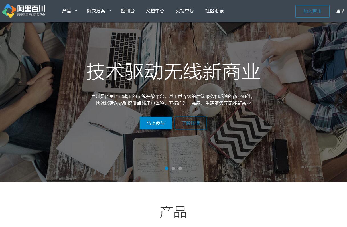 | 网站简介: 阿里百川是隶属于阿里巴巴集团的无线开放平台,基于世界级的后端服务和成熟的开发组件,为移动开发者(涵盖移动创业者)提供快速稳定的APP搭建、降低运维管理成本、提升APP用户体验的解决方案。同时,阿里百川开放淘系电商能力,帮助APP开发者在各种场景下快速、低成本搭建无线电商导购业务,开发用户消费需求,实现商业变现。 |
