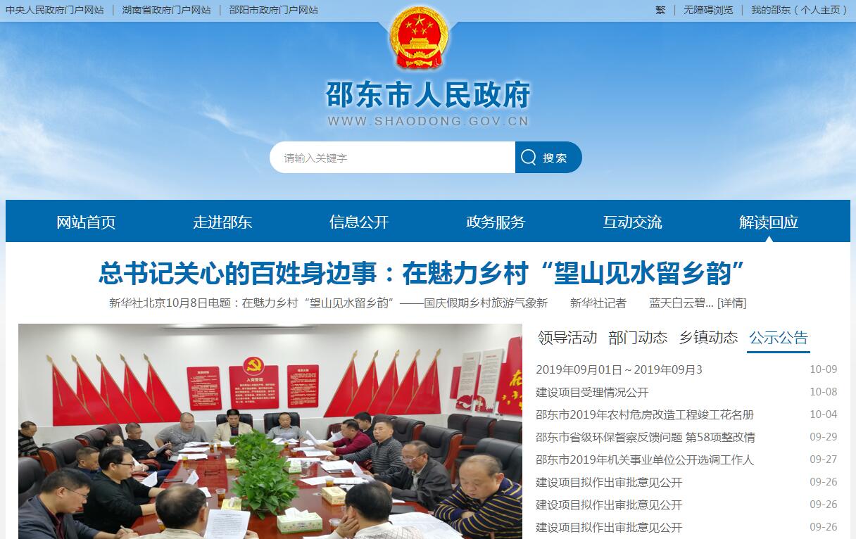 邵东市位于湖南省中部、邵阳市东大门,辖3街道18镇4乡1场和1个省级经开区,面积1778平方公里,人口134.5万,素有“百工之乡”“商贸之城”“民营之都”的美称,拥有全国可持续发展实验区、全国科技进步先进县、全国电子商务进农村综合示范县、中国箱包皮具生产基地、全国打火机和箱包加工贸易转型升级基地、中国注塑打火机生产第一县、湖南省特色制造产业重点县、省级文明县城等区域发展名片。2017年县域经济综合考核排名全省第四。——综合实力稳步提升。2018年实现地区生产总值430亿元,增长11%,增速排全省第一;财政总收入25.32亿元,税收占比达77%。三次产业结构比从12.1:46.8:41.1调整为9.9:47.7:42.4。实现规模工业增加值173亿元,增长11.4%。企业入规122家,个转企6000余家,纳入统计的高新技术企业320家,实现高新技术产业增加值154亿元。全年实现社会消费品零售总额194亿元,增长13.0%,新增限额以上商贸企业87家、规模以上服务企业33家。第二届国际五金机电博览会成交额达65亿元。6家民营企业在湖南股交所挂牌,5家民营企业进入湖南省上市储备库,邵东成为全省首批资本市场县域工程试点县。创建“二品一标”品牌32个,流泽玉竹出口量居全国第一,“久香嘴”腐竹获中国中部农博会金奖。——三大攻坚战扎实推进。有效防控重大风险。积极化解政府性债务,停、缓、调、撤项目47个,减少总投资127.8亿元。有序推进脱贫攻坚。投入产业奖补资金1亿元,发放小额信贷1800万元,带动7100多户贫困户增收,投入3亿元用于贫困村水电路等基础设施建设,教育扶贫投入4274.72万元。有力治理环境污染。整改落实2018年中央环保督察组交办件72件、省环保督察组交办件62件。整顿关闭各类污染企业88家,完成人工造林3.71万亩,全年空气优良率达88.8%。——转型升级步伐加快。2018年完成固定资产投资262亿元,增长20.6%,其中民间投资占比超过70%。怀邵衡铁路建成通车,杨桥高铁站、兴隆变电站、兴隆工业园污水处理厂陆续建成并投入使用。新增国家级高新技术企业14家,专利授权513件。智能制造技术研究院成为湖南省科普基地,荣获2018年中国产学研合作促进奖,其轻工行业智能装备“双创”共享平台项目成为全国制造业试点示范项目。锐科机器人获得“中国制造强国2025”十佳品质奖和行业荣誉奖。湘商产业园标准厂房竣工130万平方米,投产98万平方米,入驻企业188家。——改革开放纵深推进。深化“放管服”改革,进一步推进“互联网+政务服务”,建立“四办”事项目录476项,清理取消证明材料464项,行政审批提速50%以上,深化“放管服”改革工作获省政府表彰。“互联网+政务服务”平台建设实施到县。新登记市场主体1.3万户,新增出口企业80家,2018年实现进出口总额9亿美元,增长32.6%。——城乡面貌明显改观。棚户区改造货币化安置2852户、实物安置498套。县城生活污水处理率达90.1%,绿化率达41%。40万农村人口告别不安全饮水。提质改造农村公路187.9公里,创建全省“四好农村路”示范县。——民生福祉持续增进。2018年城镇和农村居民人均可支配收入分别达到33122元和20903元。13项省定重点民生实事项目全面完成。投资3亿元新建扩建学校11所,顺利通过湖南省教育“两项督导”评估考核和国家义务教育均衡发展县评估验收,“纯粹教育”理念被教育部推介。462个规范化村卫生室建成并投入使用。