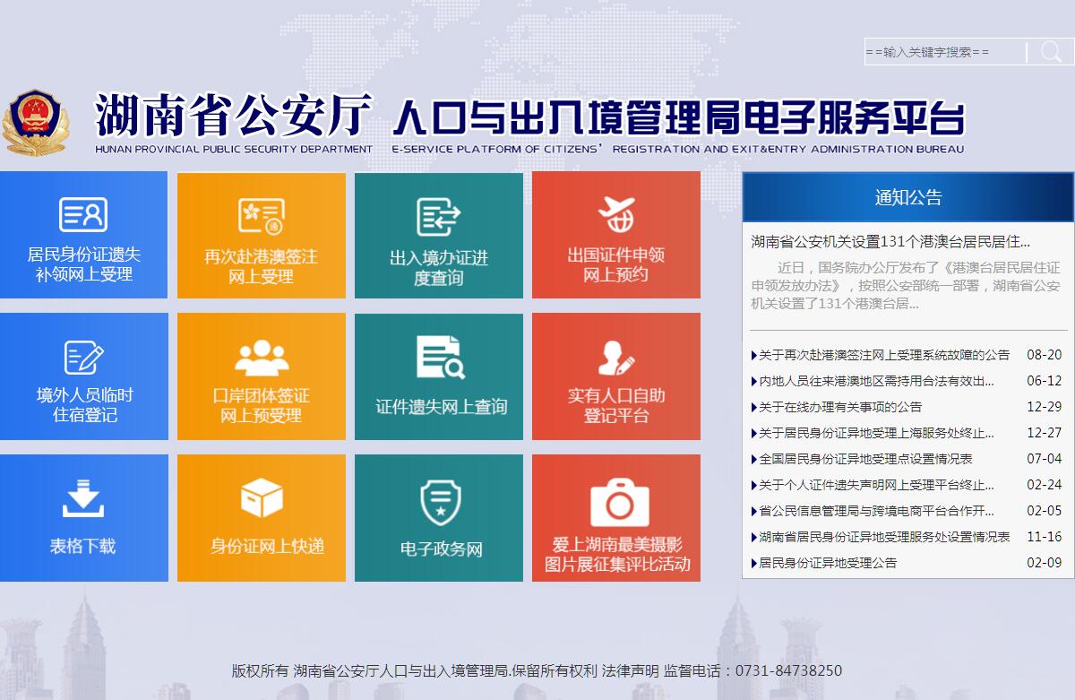 湘警网(湖南省公安厅人口与出入境管理局电子服务平台)。