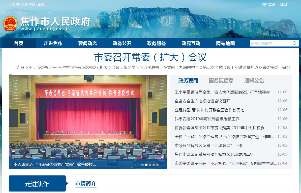 焦作位于河南省西北部,北依太行,南临黄河,辖6县(市)4区和1个城乡一体化示范区,总面积4071平方公里,总人口377.5万。山水焦作,太极圣地。焦作古称山阳、怀州,是华夏民族早期活动的中心区域之一,是司马懿、韩愈、李商隐、许衡、朱载堉等历史文化名人的故里,是“竹林七贤”的聚集地、太极拳的发源地、“四大怀药”的原产地。太行山在焦作连绵百余公里,有云台山、神农山、青天河3家5A级景区,是中国优秀旅游城市、国家智慧健康养老示范基地,正在依托独有的山水资源、太极文化、怀药原产地优势,全力打造“世界太极城、中原养生地”。创新焦作,开放高地。焦作曾是全国著名的“百年煤城”和老工业基地。近年来,大力实施创新驱动、开放带动战略,全面加快转型步伐,现已形成装备制造、汽车及零部件等十大产业,电子商务、新能源汽车等新业态、新产业加速兴起,连续六次荣获“全国科技进步先进市”,是国家知识产权试点城市和国家新型工业化示范基地,拥有1个国家级高新区、8个省级产业集聚区和焦作海关、河南德众保税物流中心、河南进口肉类指定口岸焦作查验场等开放载体,开放型经济发展水平多年居河南省前3位。富裕焦作,民生福地。近年来,焦作按照高质量发展要求,加快建设全面体现新发展理念示范城市,经济社会实现平稳较快发展,在中国社会科学院刚刚发布的2018年中国城市竞争力排名中,焦作经济竞争力位居河南第三,入围全国百强。发展中坚持共建共享,围绕打造精致城市、品质焦作,实施“四城联创”,推进百城提质,先后成功创建国家森林城市、国家园林城市、全国水生态文明城市、国家文明城市提名城市,公众安全感指数连续多年位居河南省前列,城市生态优美,生活宜居舒适。出彩焦作,圆梦宝地。焦作是郑州大都市区门户枢纽城市、中原城市群和豫晋交界地区的区域性中心城市,郑焦城际铁路和焦作直达北京、上海、深圳的高铁均已开通运营,太焦铁路和呼南高铁、焦济洛城际铁路等正在快速推进。进入新时代,焦作依托优越的区位条件,围绕在中原更加出彩中出重彩更精彩的目标,抢抓郑焦深度融合上升为省级战略机遇,积极构建“一枢纽、一中心、两新城、两走廊、三平台、四绿带”发展格局,在中原城市群中的地位持续提升。特别是近年来,大力简政放权,优化服务,成功创建全国首家市县乡村“四级联创”的国家级行政审批服务标准化试点市、全省“一网通办”前提下的“最多跑一次”改革试点市。焦作日益成为蓄势崛起的发展高地、商机涌动的投资宝地、成就梦想的创业福地。
