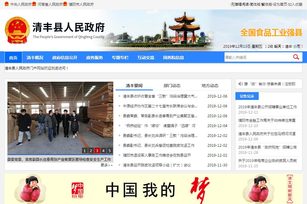 清丰县位于河南省东北部,冀鲁豫三省交界处。总面积828平方公里,耕地面积85万亩,总人口72万,辖8镇9乡,是河南省扩权县之ー,是全国文明城市提名城市、国家园林城、国家卫生城。中华孝乡,人文厚重。清丰古称顿丘,因隋朝时出平民大孝子张清丰被命名为清丰县,是全国唯一以孝子之名命名的县,被命名为中国孝道文化之乡。这里还是顿丘令曹操旧地,忠勇南霁云故里。中原红都,革命老区。抗日战争时期,中共中央北方局、冀鲁豫军区司令部暨冀鲁豫军区第一兵工厂曾设在双庙乡单拐村,邓小平、宋任穷、黄敬等老一辈无产阶级革命家曾在这里领导抗日战争。冀鲁豫边区革命根据地旧址纪念馆被评为4A级旅游景区,全国爱国主义教育示范基地、河南省红色旅游经典景区。交通便利,四通八达。清丰距北京、天津均约500公里,郑州、济南、石家庄“两小时经济圈”在此交汇;境内大广、南林、范辉三条高速和G106交汇互通,与京港澳、连霍、德上等高速纵横交错、联接成网;距正在筹建的豫北机场60公里,距正在建设的郑济高铁濮阳出口仅10分钟车程。市场广阔,投资高地。200公里半径内有20个地级城市,辐射消费人口近1.2亿,是承接东部、服务中部、辐射西部的制高点,是中原经济区对接环渤海经济圈的桥头堡。生态宜居,理想之城。聘请上海同济大学高标准规划编制县城总体规划及控制性详规,被列入首批河南省百城建设提质工程示范县,城市基础设施建设持续全面提升,居住环境持续优化。