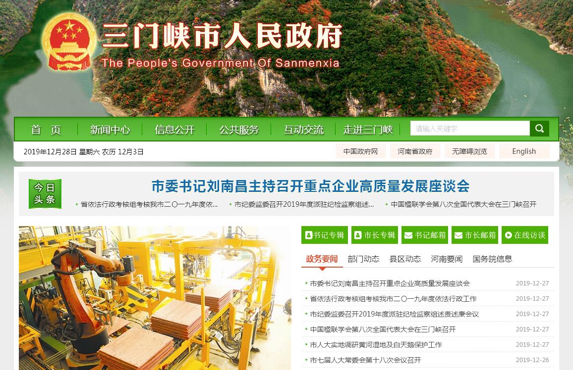 | 网站简介: 三门峡,河南省辖地级市,位于豫晋陕三省交界黄河南金三角地区,地貌以山地、丘陵和黄土塬为主,属于暖温带大陆性季风型半干旱气候;总面积10496平方千米,辖2个区、2个县、代管2个县级市;2018年总人口230.80万人。三门峡有“五山四岭一分川”之称,西接关中,北邻三晋,东守中原,境内陇海铁路、连霍高速公路、310国道、郑(州)西(安)高铁横贯东西,209国道、三(门峡)淅(川)高速公路和浩吉铁路连通南北,是连接豫晋陕三省、北上南下、西进东出的区域交通枢纽城市。同时,仰韶文化、道家文化和虢国文化都发源于此。2018年,三门峡市生产总值1528.12亿元,按可比价格计算,比2017年增长8.0%。其中:第一产业增加值119.09亿元,增长4.1%;第二产业增加值842.19亿元,增长8.5%;第三产业增加值566.84亿元,增长8.0%。 |