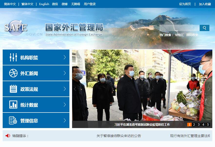 中华人民共和国国家外汇管理局(State Foreign Exchange Administration of the People's Republic of China/State Administration of Foreign Exchange,SAFE),中国管理外汇的职能机构,为国务院直属单位,由中国人民银行归口管理。组建于1979年3月,总局设在北京。 机关机构设置 国家外汇管理局为副部级国家局,内设综合司、国际收支司、经常项目管理司、资本项目管理司、管理检查司、储备管理司、人事司(内审司)7个职能司和机关党委。设置中央外汇业务中心、信息中心、机关服务中心、《中国外汇》杂志社4个事业单位。其基本职能:(一)研究提出外汇管理体制改革和防范国际收支风险、促进国际收支平衡的政策建议;研究落实逐步推进人民币资本项目可兑换、培育和发展外汇市场的政策措施,向中国人民银行提供制订人民币汇率政策的建议和依据。(二)参与起草外汇管理有关法律法规和部门规章草案,发布与履行职责有关的规范性文件。(三)负责国际收支、对外债权债务的统计和监测,按规定发布相关信息,承担跨境资金流动监测的有关工作。(四)负责全国外汇市场的监督管理工作;承担结售汇业务监督管理的责任;培育和发展外汇市场。(五)负责依法监督检查经常项目外汇收支的真实性、合法性;负责依法实施资本项目外汇管理,并根据人民币资本项目可兑换进程不断完善管理工作;规范境内外外汇账户管理。(六)负责依法实施外汇监督检查,对违反外汇管理的行为进行处罚。(七)承担国家外汇储备、黄金储备和其他外汇资产经营管理的责任。(八)拟订外汇管理信息化发展规划和标准、规范并组织实施,依法与相关管理部门实施监管信息共享。(九)参与有关国际金融活动。(十)承办国务院及中国人民银行交办的其他事宜。