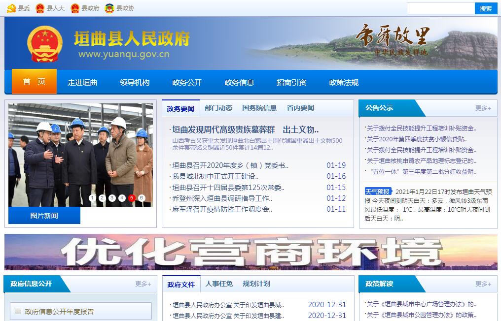垣曲县(yuán qū xiàn)又称舜乡,是帝舜故里,位于山西省南端,东跨王屋,西踞中条,南界黄河,北接太行,隶属于山西省运城市。垣曲县商周时为亘方,西汉称垣县,宋代始称垣曲并沿用至今。垣曲县人文资源富集,“世纪曙猿”化石的发现推翻了“人类起源于非洲”的论断;华北地区唯一的原始森林——历山,被誉为“华北动植物物种基因库”。辖区年均气温13.5℃,年均降水量631毫米,无霜期230天,素有“十里不同天”的说法。垣曲县是“国家绿色能源示范县”。至2013年,辖区国土总面积1620平方公里,下辖11个乡镇、188个村,总人口23.5万。2020年1月22日,被命名为国家园林县城。2019年,垣曲县完成地区生产总值649618万元,按可比价格计算,比上年增长7.3%。其中,第一产业增加值67236万元,增长3.1%;第二产业增加值254992万元,增长6.6%;第三产业增加值327389万元,增长8.4%。三次产业构成由上年的10.0:39.4:50.6,调整为10.3:39.3:50.4。三次产业对经济增长的贡献率分别为3.4%、36.3%和60.4%。人均地区生产总值26913元,比上年增长7%。