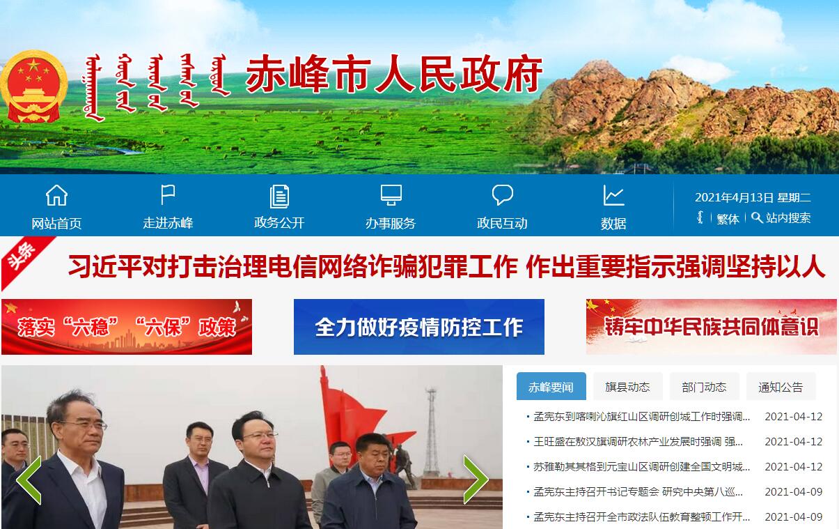 赤峰市人民政府官方门户网站。