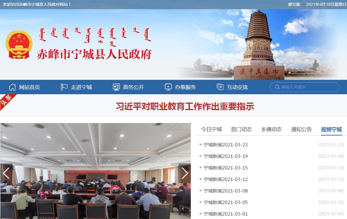宁城县人民政府官方门户网站。