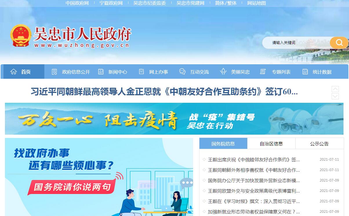 吴忠市人民政府官方门户网站。