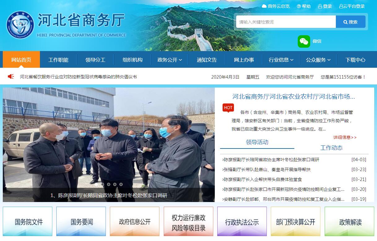 河北省商务厅主要职责是:(一)贯彻落实国家有关内外贸易、国际经济合作的发展战略、方针、政策和法律法规。起草商务领域地方性法规、规章草案;拟订全省商务发展规划、政策措施和年度安排并组织实施;研究经济全球化、区域经济合作、现代流通方式的发展趋势并提出建议。(二)拟订全省国内贸易发展规划。促进城乡市场发展,提出引导国内外资金投向市场体系建设的政策;指导大宗产品批发市场建设和城市商业网点规划、商业体系建设工作;推进农村市场体系建设,组织实施农村现代流通网络工程。(三)提出流通体制改革建议。负责推进流通产业结构调整,指导流通企业改革、商贸服务业和社区商业发展;提出促进商贸中小企业发展的政策建议,推动流通标准化和连锁经营、商业特许经营、物流配送、电子商务等现代流通方式的发展;指导全省流通领域信息网络和电子商务建设。(四)牵头推进商务领域信用体系建设,建立商务诚信公共服务平台。规范商贸企业交易行为,牵头推动重要产品追溯体系建设;按有关规定对特殊流通行业进行监督管理。(五)组织实施重要消费品市场调控和重要生产资料流通管理,负责建立健全生活必需品市场供应应急管理机制,监测分析市场运行、商品供求状况,调查分析商品价格信息,进行预测预警和信息引导,按分工负责重要消费品储备管理和市场调控工作,按有关规定对成品油市场进行监督管理,对酒类流通发展进行指导。(六)执行国家制定的进出口商品、加工贸易管理办法和进出口商品、技术目录。贯彻执行国家促进外贸增长方式转变的政策措施;组织实施国家拟定的重要工业品、原材料和重要农产品进出口总量计划;会同有关部门协调大宗进出口商品;指导贸易促进活动和外贸促进体系建设。(七)贯彻执行国家对外技术贸易、进出口管制以及鼓励技术和成套设备进出口的贸易政策。拟定和推进全省科技兴贸战略;依法监督技术引进、设备进口、国家限制出口的技术工作;依法颁发防扩散等与国家安全相关的出口许可证件。(八)会同有关部门贯彻执行国家促进服务出口和服务外包发展的规划、政策,牵头拟订全省服务贸易发展规划并组织实施。(九)贯彻执行国家利用外资法律法规规章和外商投资产业政策。拟订全省外商投资政策并组织实施;依法对外商投资企业的设立及变更事项进行审批和备案;依法对外商投资项目的合同章程及法律规定的变更事项进行审批和备案;依法监督检查外商投资企业执行有关法律法规规章、合同章程的情况并协调解决有关问题;指导全省吸引外资及外商投资企业审批工作,规范对外招商引资活动;综合协调、指导国家级、省级经济技术开发区有关工作;指导和管理全省外商投资企业进出口工作。(十)负责全省对外经济合作工作。拟订并执行对外经济合作政策,依法管理和监督对外投资、对外承包工程、对外劳务合作等;指导外派劳务和境外就业人员的权益保护工作;拟订我省对外投资管理办法和具体政策;指导境外经贸园区有关工作;负责对外援助有关工作;指导我省对外投资和经济合作促进工作。(十一)配合商务部调查国(境)外对我国出口商品实施的歧视性贸易政策、法律法规及做法。组织协调反倾销、反补贴和保障措施等贸易救济调查以及进出口公平贸易相关工作;指导、协调出口产品贸易摩擦应对和进口产品贸易救济申诉工作;跟踪调查反倾销、反补贴和保障措施等贸易救济措施对我省相关产业的影响;建立产业安全预警机制。(十二)负责全省商务系统涉及世贸组织相关事务的研究、指导和服务工作,配合商务部解决世贸组织框架下涉及我省的贸易争端,负责推进我省进出口贸易的标准化建设。(十三)贯彻执行国家制定的对自由贸易区国家和地区的经贸规划、政策,并组织实施,管理联合国及其他国际组织或外国政府对我省经济技术合作方面的无偿援助及赠款等发展合作业务。(十四)负责全省会展业促进与管理工作,指导、管理境内外对外经济技术展览会和赴境外非商业性办展活动。(十五)监测分析全省商务运行情况,承担全省商务系统对外宣传和信息发布工作。(十六)完成省委、省政府交办的其他任务。