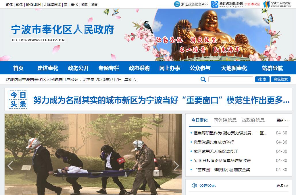 奉化地处长三角南翼,东海之滨,是著名的弥勒圣地、蒋氏故里。全区陆域面积1277平方公里,海域面积91平方公里,海岸线长63公里,地貌构成大体为“六山一水三分田”,辖6镇5街道,户籍人口49万。2019年,实现地区生产总值(GDP)645.25亿元,增长6.5%;财政总收入90.14亿元,社会消费品零售总额190.1亿元,增长8.1%;城镇和农村居民人均可支配收入分别达到56551元和33185元,增长7.1%和8.5%;接待游客2801.28万人次,实现旅游总收入268.08亿元,分别增长17.0%和24.7%。近年来,先后被评为国家卫生城市、中国优秀旅游城市、最佳生态文化旅游城市、首批国家农产品质量安全市、省生态市和省环保模范城市。人文底蕴深厚,历史名人辈出。早在五六千年前,就创建了茗山后文化;距今4200年前后,以白杜为中心建立名震中原的堇子国,在相当一段时期内是宁波区域政治、经济和文化中心。公元738年(唐代)建县,1988年撤县设市。奉化为五代后梁布袋和尚(弥勒佛)出生出家得道圆寂归葬之地,被誉为“弥勒圣地”。宋代有以“梅妻鹤子”著称的林逋,元代有“江南夫子”、诗坛名家戴表元,近现代有蒋介石、蒋经国父子,“中国奥运之父”王正廷等,还涌现了早期浙江省委书记卓兰芳及卓恺泽、王鲲等一批杰出革命志士,近年来银泰董事长沈国军、网易创始人丁磊、泳坛名将汪顺等经济、文体届知名人士层出不穷。生态环境优美,旅游资源丰富。奉化区森林覆盖率达66%,常年300多天大气环境质量达到国家一级标准,水资源丰富,为宁波重要的饮用水源保护区,环境综合定量考核连续15年居全省前列。溪口—滕头景区是宁波唯一的国家AAAAA景区,蒋氏故里溪口是全国对台工作重要窗口,雪窦寺为“天下禅宗十刹”之一,高56.7米的露天弥勒大佛系全球最高铜质坐姿佛像。溪口镇和“全球生态500佳”、“世界十佳和谐乡村”滕头村分别入选上海世博会城市未来馆亚洲唯一代表案例和城市最佳实践区唯一乡村案例。经济发展协调,产业平台集聚。奉化物产丰饶,有水蜜桃、竹笋、芋艿、花卉苗木、草莓、海水养殖等十大主导农产品,是全国休闲农业与乡村旅游示范县、省首批“农业特色优势产业综合强县”,位居全省现代化农业第4位。工业产业集群明显,以经济开发区为中心,形成船舶制造、汽车摩托车及零部件、气动元件、厨卫家居、电子通讯、服装服饰等为主导的现代产业体系,新材料、新装备、节能环保和新一代信息技术等战略性新兴产业发展迅速,拥有浙江中烟、比亚迪新能源汽车、苏氏精密制造、美康生物、雪花啤酒、罗蒙集团、亚德客集团等知名企业,为全国汽车零部件生产基地、国家气动元件集群示范基地、中国厨卫配件产业基地、中国服装之乡。随着奉化撤市设区,加快融入宁波城市经济体系,全面实施“五倍速五提升”战略决策,立足大招商、大开放、大平台,着力推动经济总量、城乡品质、民生水平、文化实力、内生动力跨越提升,加快建设经济繁荣、功能齐全、环境优美、文明和谐、富有活力、辐射带动力强的现代化健康美丽新城区,在更高水平上全面建成小康社会。