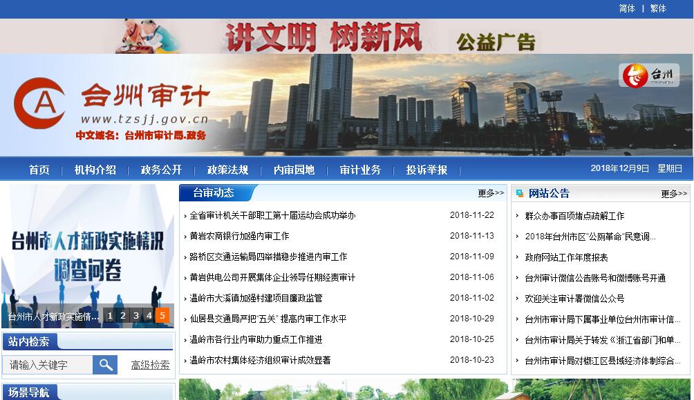 台州市审计局是市政府综合经济监督的行政职能部门,根据《中华人民共和国宪法》、《中华人民共和国审计法》、《中华人民共和国审计法实施条例》和有关法律、法规规定,在市长和浙江省审计厅的领导下,负责本行政区域内的审计工作,对市政府和浙江省审计厅负责并报告工作。审计工作主要职责是:(一)组织实施国家审计的法律、法规和方针、政策;组织指导、协调监督下级审计机关的业务。(二)向市人民政府报告和向市人民政府有关部门通报审计情况,提出制定和完善有关政策和宏观调控措施的建议。(三)根据《中华人民共和国审计法》的规定,直接进行下列审计:1、市级财政预算执行情况和其他财政财务收支。2、市级各部门、事业单位及下属单位的财务收支。3、市直属企业的财务收支,市本级重点建设项目的工程预算执行情况和决算。4、各县(市、区)人民政府的预算执行情况和决算。5、市属地方金融、保险机构和非银行金融机构的资产、负债和损益情况。6、市人民政府部门管理和受市人民政府委托由社会团体管理的社会保障基金、环境保护资金、社会捐赠资金及其他有关基金、资金的财政财务收支。7、国际组织和外国政府援助、贷款项目的财务收支。8、其他法律法规规定应由市审计局进行审计的事项。(四)承担审计署授权的国家金融、保险企业、非银行金融机构和中央企事业单位的审计事项。(五)向市人民政府提交市级预算执行情况的审计结果报告;受市人民政府委托代拟向市人大常委会提出市级预算执行情况和其他财政收支审计工作报告。(六)组织实施对贯彻执行国家财经方针政策和宏观调控措施情况的行业审计、专项审计和审计调查;依法受理和办理审计行政复议案件。(七)负责市本级经济责任审计;组织、指导下级审计机关进行经济责任审计。(八)必要时,对下级审计机关管辖范围的重大审计事项进行直接审计和对下级审计机关审计的单位进行抽审。(九)与县(市、区)人民政府共同领导县(市、区)审计机关,协同办理县(市、区)审计机关负责人的任免事项。(十)组织对市重点国有企业和重点建设项目的审计监督。(十一)组织实施对内部审计的指导与监督;监督社会审计组织的审计业务质量;组织全市审计专业人员的业务培训。(十二)承办市政府、上级审计机关交办的其他事项。