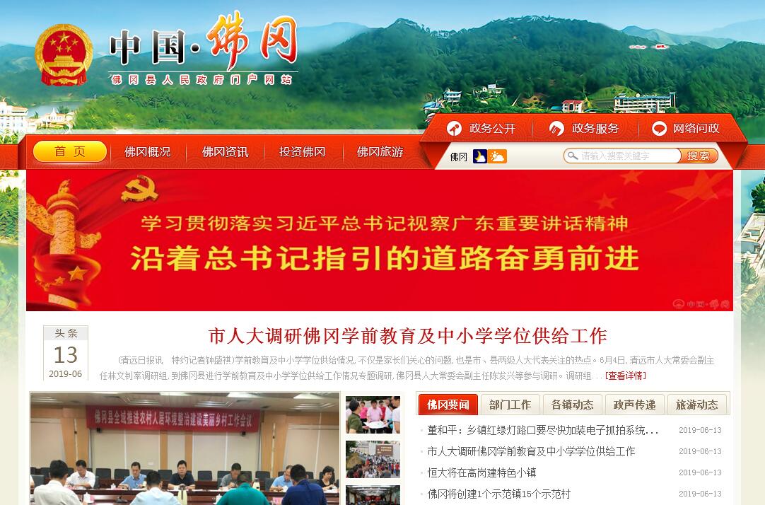 佛冈县位于广东省中部,属山区县。2017年,佛冈总面积1295平方公里,分设6个镇78个村委会和12个社区居委会,另有省级林场和自然保护区各1个,户籍人口34.98万。清嘉庆十八年(1813年)设立佛冈直隶军民厅,正式成为国家行政建置。民国3年(1914年)撤厅改县,始称佛冈县。新中国成立后,佛冈县的行政区划归属曾多次变动,先后划归北江专署、粤北专署、佛山专署、韶关专区管辖,1952年与从化县合署办公,1958年10月并入从化县,1961年5月恢复佛冈县建制。1983年7月划归广州市管辖,1988年1月划归清远市管辖。佛冈县地形为东北高、西南低。全县以低山丘陵为主,主要山脉有观音山(最高峰的海拔为1218.8米)、独凰山、羊角山等。佛冈县气候属亚热带湿润气候和大陆性季风气候。主要河流有潖江、烟岭河。土地资源:包括耕地、山地等。水资源:佛冈属全省3个暴雨中心地区之一,经水资源调查,全县水能理论蕴藏量为3.6万千瓦,其中较易开发的有1.4万千瓦,现已开发1.21万千瓦。植物资源:主要经济植物共计179科572属1177种。动物资源:有两栖类(2目3科)、爬行类(2目5科)、鸟类(13目29科)、哺乳类(7目14科)。矿产资源:有黑色金属矿、有色金属与类金属矿、稀有金属矿等多种。地下水资源:地下热水有汤塘黄花湖、水头冚尾、石角塘二等温泉;矿泉水有黄花湖矿泉、黄花白石矿泉等。主要物产有粮食、经济作物、水产品、水果、家畜、家禽等。佛冈人民有勇于探求真理、敢于斗争、敢于胜利的精神。早在20世纪20年代,就有佛冈进步人士远赴海外探求真理。1938年冬起建立中共佛冈县地方组织,领导人民群众投身抗日战争、解放战争,为民族独立和人民解放事业作出了重要贡献。佛冈具有深厚的民俗文化底蕴。佛冈县档案馆珍藏有清代道光年间编纂的《佛冈厅志》,文物有新石器时代和西周、战国时期的多种文物。古建筑有东坑黄氏宗祠、龙山上岳古围村等多处。民间习俗有客家山歌、舞狮、舞龙、赛龙舟等。汤塘妇女的舞被狮、高岗的豆腐节等,都是佛冈独具特色的传统活动,被评为省级非物质文化遗产。佛冈历史上一直以传统农业经济为主,改革开放后逐步兴办工业,并致力发展第三产业。进入21世纪以来,以招商引资的大突破带动工业的大发展,工业在全县国民经济中占绝对优势。佛冈过去受自然条件和经济基础的制约,各项社会事业发展缓慢。改革开放以来,逐步扭转了基础差、发展慢的局面,科、教、文、卫、体等各项事业加快发展。佛冈县综合实力不断增强。2005年5月,中共中央政治局委员、广东省委书记张德江到佛冈考察,曾赞誉佛冈为“山区发展的典型”。2017年,佛冈县生产总值达到126亿元,人均生产总值40056元,财政总收入33.82亿元。