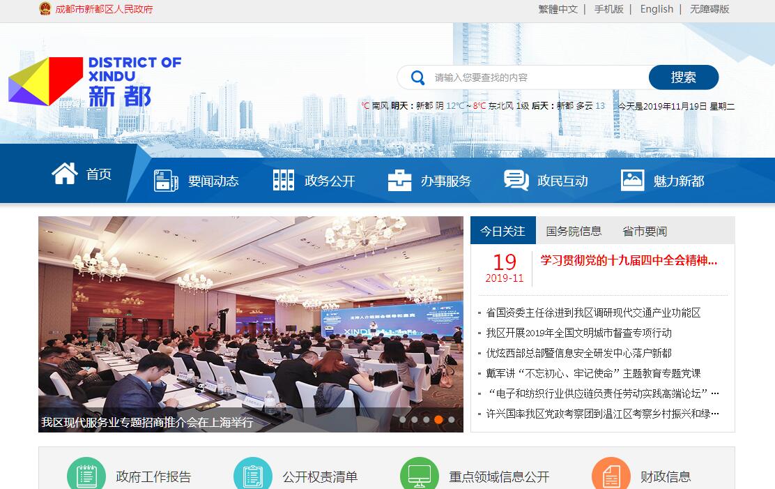 新都区地处成都北门,区域面积497平方公里,辖13个镇(街道)、255个村(社区),人口120余万,是成都市八大新型卫星城之一。新都历史悠久,建治于春秋末期,距今近2800年历史,是省级历史文化名城,有宝光寺和升庵桂湖两处国家级重点文保单位。始建于东汉的宝光寺位列“长江流域四大佛教丛林”之一;“西蜀第一湖”升庵桂湖是明代状元、大学士杨慎的祖居,宝光桂湖文化旅游区已列入国家级4A景区。新都区位优越,是成德绵经济带重要节点城市,地处成都城市发展北中轴线上,是“蓉欧快铁”和“南丝绸之路”的起点城市。距成都火车客运东站、北站和成都铁路集装箱中心站、双流国际机场都在30分钟车程内。规划建设中的地铁1、3、5号线直达新都。新都物流中心已成为重要的西部城际配送枢纽和城市配送中心。新都产城相融,有西部机电装备制造工业区、成都北部商贸综合功能区、成都家具产业园、新都物流中心、中车轨道交通产业园等9大产业园区。拥有医药、食品、家具、电子、汽车配件、建筑等传统产业以及能源装备、轨道交通、航空动力等新兴产业。区内有西南石油大学、四川音乐学院、成都医学院、省社科院、农科院等高校及科研院所,拥有7个国家级重点实验室、3个国家级工程技术中心、3个国家级企业技术中心,1个国家大学科技园。近年来,通过持之以恒的环境治理,新都成功创建国家生态区和全国绿化模范区。“十三五”时期,新都区将深入落实中央“四个全面”战略布局、省委“三大发展战略”和市委“改革创新、转型升级”总体战略,牢固树立和大力践行“创新、协调、绿色、开放、共享”五大发展理念,深入实施“产业强城、生态护城、创新活城、文化兴城、和谐优城”五大行动,主动引领新常态、抢抓机遇促发展,统筹推进“五位一体”和党的建设,高标准全面建成小康社会,加快建设创业环境更优、发展活力更强、幸福指数更高的现代化国际化新型卫星城。
