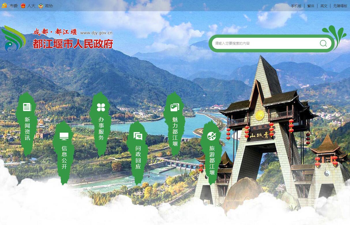 都江堰市位于成都平原西北边缘岷江出山口处,因世界著名水利工程都江堰和中国道教发祥地青城山而久已名闻遐迩;市境东与彭州市、郫县、温江区交界,西、北与汶川县相连,南邻崇州市;距成都市48千米。都江堰市是一座具有2000多年建城史,因堰而起、因水而兴的城市;在新石器时代就是古蜀先民聚居的地区,是古蜀国的发祥地之一。岷江源自阿坝藏族羌族自治州岷江南麓,东源出弓杠岭,西源出郎架岭,南流经松潘、汶川等县,至都江堰市出峡,水流充沛,到成都平原后流速陡降,易淤易决,在都江堰水利工程兴建以前,水灾严重。战国初期,蜀相开明决玉垒山,分引岷江之水,以排除水患;到秦昭王时,蜀郡守李冰访察水脉,因地制宜,因势利导,在前人治水基础上制定“深淘滩、低作堰”“遇弯截角、逢正抽心”的治水方针,基本完成都江堰排灌工程,使成都平原“沃野千里、号为陆海”,为后世成为“天府之国”奠定基础;李冰在水利方面的卓越贡献,因此受到后人景仰。都江堰市先后为道、郡、军、州、县所在地,1949年12月23日,中华人民共和国成立后设立灌县;1988年5月,经国务院批准,撤销灌县设立都江堰市。都江堰市以山、水、林、堰、桥浑然一体,充分体现城中有水、水在城中、“灌城水色半城山”的布局特色,为此有着“拜水都江堰、问道青城山”之美誉。都江堰—青城山在民国时期就列为川西风景名胜区。1977年,国家批准灌县为对外开放旅游城市。1982年,国务院公布青城山—都江堰风景名胜区为国家重点风景名胜区。1983年2月23日,国务院将都江堰列为全国重点文物保护单位。1993年2月13日,四川省人民政府同意建立都江堰市旅游度假区。1994年,都江堰市被确定为国家级历史文化名城。1995年9月,被评为国家级卫生城市。1995年6月,获全国文化先进市称号。1999年1月8日,国家旅游局授予都江堰市“中国优秀旅游城市”称号。2000年11月29日,在联合国第24届世界遗产委员会上,青城山—都江堰风景名胜区列入《世界文化遗产名录》。2001年12月28日,都江堰市获国家建设部“中国人居环境范例奖”。2003年10月,联合国人居中心授予都江堰市2002年度“迪拜国际改善居住环境良好范例奖”。2004年10月12日,都江堰市在“CCTV2004年度中国魅力城市”展示活动中,荣膺“最佳中国魅力城市”称号。2004年10月,四川省、成都市分别授予都江堰市“四川省长寿之乡”“成都市长寿之乡”牌匾。2005年3月18日,四川省授予都江堰市“双拥模范城”称号。2007年5月8日,青城山—都江堰风景名胜区被评为全国AAAAA级旅游景区。2013年,都江堰市获联合国“杰出绿色生态城市奖”。2015年,荣获“2015中国旅游创新奖”。2015年,都江堰市面积1208平方千米;辖5个街道办事处、13个镇、1个乡,1个经济开发区;户籍人口62.05万人,常住人口68.02万人,城镇化率55.86%;出生人口5179人,死亡人口4534人,人口自然增长率1.04‰。都江堰市地区生产总值(GDP)275.38亿元,比上年增长10%。其中,第一产业增加值23.83亿元,增长5%;第二产业增加值101.84亿元,增长10.5%;第三产业增加值149.71亿元,增长10.4%。三次产业结构比为8.6:37:54.4,对经济增长的贡献率分别为4.2%、41.8%、54%,分别拉动GDP增长0.4、4.2、5.4个百分点。按常住人口计算,人均地区生产总值40754元,增长8.9%。