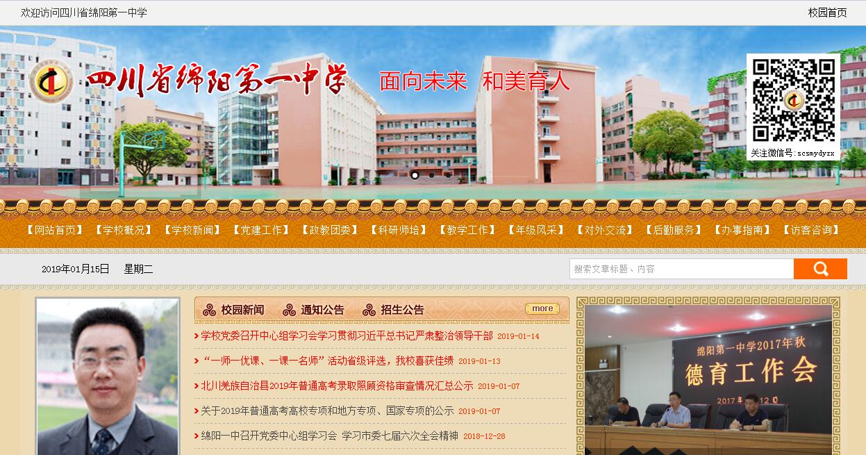 四川省绵阳第一中学系绵阳市教育和体育局直属公办学校,2003年被授予“四川省示范性普通高中”,2013年被授予“四川省二级示范性普通高中”。学校现占地31658平方米,建筑面积41179平方成,固定资产2.13亿元。现有教学班75个,在校学生近5000人。现有在职教职工273人,其中,特级教师4人,高级教师85人,中级教师123人。学校以"面向未来、和美育人"为办学理念,秉承传承创新的思想,实施引领激励的管理,落实精细化的管理过程,教育教学质量迅猛攀升。领导班子精诚团结,勤政备实,师资雄厚,名师辈出。学校推行新课改,践行以“导学案为载体的小组合作学习”理念,实施“二段八步”的课堂教学模式,“初中领跑,高中优质”享誉绵州。教育科研领跑全川,是“四川省校本研修示范学校”,被教育部授予“全国校本课程研修示范学校”光荣称号。学校个性特长教育成绩卓著,射击、赛艇、皮划艇等传统体育项目特色尤其突出。多元升学渠道畅通,学校是“新加坡公派留学”学校,“德国歌德学院项目”联系学校,中美“千校携手”合作学校,俄罗斯、乌克兰留学直通学校,西安交大少年班直升学校。学校初中教育教学质量评估连续十三年领先绵阳市公办初中,高考连续多年获得市特等奖、一等奖。四川省绵阳第一中学是绵阳市办学历史最悠久的学校,文化积淀深厚。学校始建于1740年(清乾隆5年)。清绵州知府在学校现址(文昌祠)延师课读,名为“文昌书院”。1802年(嘉庆7年),设立绵州试院。1840年(道光20年),扩建绵州试院,更名为“左绵书院”。1906年(光绪32年),根据清政府“各府、厅、直隶州均设中学堂”之规定,将“左绵书院”改为“官立中学堂”。1910年(宣统2年)3月15日(农历)正式开学,取名“绵州联立中学堂”。1931年,更名为“绵属共立中学校”,后改为“县立中学”,1945年始办高中。1950年人民政府接管学校后,合并绵阳县立中学、县立女子中学、私立涪昌中学、魏城中学、国立六中二分校为“绵阳县第一初级中学”。1976年恢复办高中,1983年5月批准为完全中学,更名为“四川省绵阳市第一中学”。1988年在绵阳市率先实行校长负责制。1998年更名为“四川省绵阳第一中学”。2003年被授予“四川省普通示范性高中(省重点中学)”2013年被授予“四川省二级示范性普通高中”。四川省绵阳第一中学有近300年的办学历史。经过不断改革和发展,形成了“育人为本,和谐发展”的办学理念。“育人为本”,首先树立“以人为本”的新的价值观念,尊重师生的价值,保持和学生在人格上的平等,发挥学生的主体作用,引导学生全面发展;二是明确育人的指向性是培养思想素质好、基础扎实、实践能力强、具有创新精神的高素质应用型人才;三是育人格局的整体性,以培养人为根本旨趣,围绕“育人为本”加强建设,使学校形成整体性的育人格局与运行机制。“和谐发展”就是根据学生不同的个性、特长、爱好、能力、兴趣,营造氛围,提供条件,注重发展学生良好的心理素质、思维品质、意志情操,让学生的特长、能力、个性得到充分发展和发挥,使学生在德、智、体、美诸方面都得到发展,成为个性鲜明、有创造精神、有发展潜力的人。着力打造务实、勤奋,重细节、善管理,高节奏、高效率,和谐、创新的干部团队、教师团队和学生团队。以培养学生学习、生活习惯,教会学生做人为重点,拓展德育渠道,培养人文精神;以科研为先导,推进课程改革,优化课堂教学,提升办学品位。把学校办成一所高质量、高效益、高品位、有特色的省级示范性普通高级完全中学。培养目标:把学生培养成具有志向高远,素质全面,基础扎实,学有特长,阳光进步,全面发展的高素质中学生。