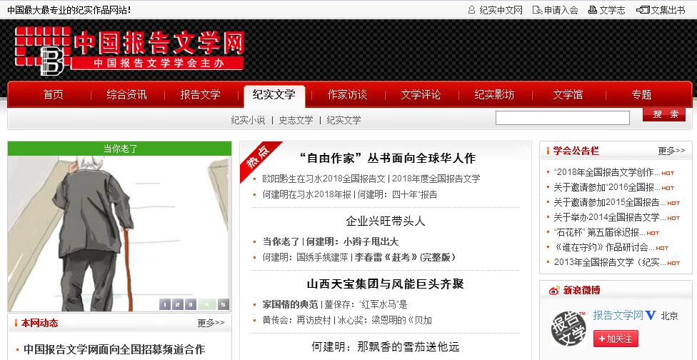 中国报告文学网是中国中国报告文学学会主办的官方文学网站,为各类文学作者、爱好者、新闻记者提供一个无疆域的信息交流与供需的权威性网络门户平台。网站主要以报告文学、纪实文学为主打内容,同时涵盖了包括小说、诗歌、散文、随笔等在内的所有文学体裁!网站立足中国报告文学学会所拥有的国内最精尖的报告文学作家资源,和全国最广大的报告文学作家团队,特邀一批著名作家为文学顾问,凭借中国纪实文学研究会强大的作家群与纪实文学研究专家群等雄厚的资源力量,团结广大文学爱好者学习马列主义毛泽东思想、文学艺术理论,提高艺术修养;组织广大纪实文学爱好者深入生活,投身改革,坚持走“文学平民化”的服务路线,创作出广大读者喜闻乐见的文学作品。中国报告文学学会是经中华人民共和国民政部、中共中央宣传部、中国作家协会批准登记的全国性纪实文学一级学术团体,是海内外纪实文学工作者的联系中心。其宗旨是坚持党的文艺方针政策,繁荣纪实文学事业,以高度的责任感反映现实生活,讴歌新时期风貌,为社会主义精神文明和物质文明建设服务。通过开展纪实文学理论研讨活动,交流纪实文学创作、编辑、出版工作经验。面向全国,辅导纪实文学创作,发现和奖励优秀文学创作和学术研究成果。为中国纪实文学事业以及中国的进步与发展做出应有贡献。