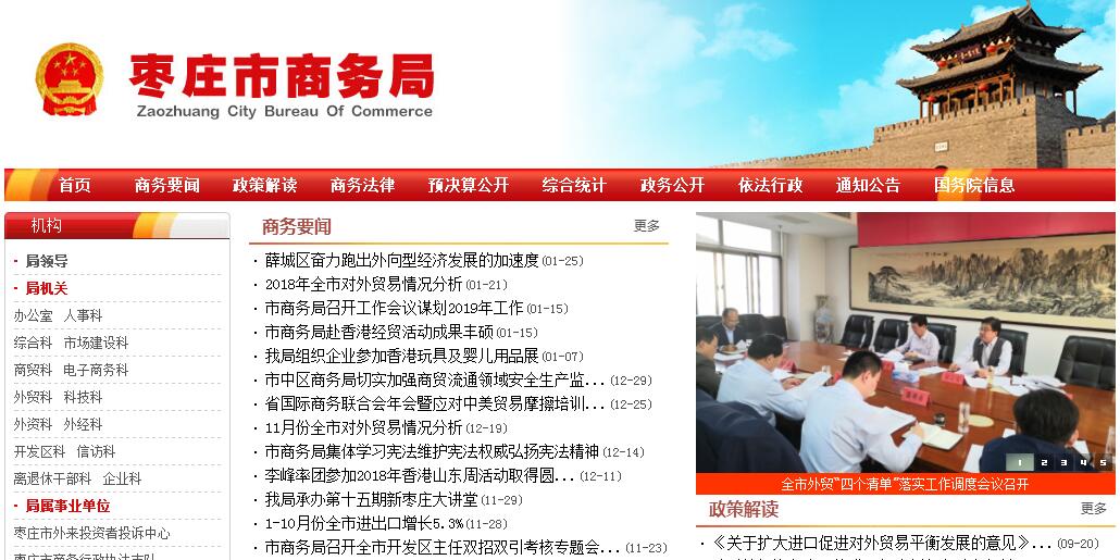 枣庄市商务局主要职责:(一)贯彻执行国家和省商务领域的法律、法规,拟订全市商务发展规划、政策并组织实施;研究经济全球化、区域经济合作、现代流通方式发展趋势和流通体制改革并提出建议。(二)负责推进流通产业结构调整,指导流通企业和社区商业发展;负责商贸服务业管理工作,提出促进商贸中小企业发展的政策建议;制定再生资源回收行业发展规划、政策并组织实施;推动流通标准化和连锁经营、商业特许经营、物流配送、电子商务等现代流通方式的发展。(三)研究提出引导国内外资金投向市场体系建设的政策建议,促进城乡市场发展;指导大宗产品批发市场规划和城市商业网点规划、商业体系建设工作;推进农村市场体系建设,组织实施农村现代流通网络工程。(四)承担牵头协调整顿和规范全市市场经济秩序工作的责任。拟订规范市场运行、流通秩序的政策;推动商务领域信用建设,指导商业信用销售;按规定对拍卖、典当、租赁、汽车流通、旧货流通、报废汽车回收(含拆解)等特殊流通行业进行监督管理;承担医药行业管理工作,拟订医药行业发展规划、政策并组织实施;负责市级药品储备管理和中药材生产扶持项目管理。(五)负责建立健全全市生活必需品市场供应应急管理机制;监测分析市场运行、商品供求状况,调查分析商品价格信息,进行预测预警和信息引导;按规定负责重要消费品储备管理、市场调控和重要生产资料流通管理工作。(六)拟订促进外贸发展方式转变的政策并组织实施;按规定负责申报、审核和监督管理重要工业品、原材料和重要农产品(粮食、棉花除外)进出口计划及配额;指导贸易促进活动和外贸促进体系建设。(七)拟订机电产品进出口发展规划、政策并组织实施;依据国家产业政策调整机电产品进出口结构;负责机电产品进出口申报、审核和管理工作,指导协调大型成套设备出口,组织企业开拓机电产品国际市场。(八)拟订技术贸易发展规划、政策并组织实施;组织实施“科技兴贸”战略相关工作,承担高新技术产品贸易促进工作;指导管理加工贸易,按规定核准加工贸易业务;按规定负责两用物项和技术进出口管理及出口管制和最终用户管理工作;推进进出口贸易标准化工作;研究制定外经贸体制改革方案,指导国有外经贸企业的改革工作。(九)牵头拟订服务贸易发展规划并开展相关工作;会同有关部门制定促进服务出口和服务外包发展的规划、政策并组织实施;推动服务外包平台建设。(十)承担世界贸易组织相关规则、协议的咨询服务工作;组织协调涉及我市的反倾销、反补贴和保障措施、其他进出口公平贸易应诉及相关工作;指导、协调企业对进口产品发起的反倾销、反补贴和保障措施调查;配合开展对外贸易壁垒调查和产业损害调查;指导、协调产业安全应对工作;按规定承担对经营者集中行为进行反垄断调查的相关工作。(十一)指导、管理全市外商投资工作;拟订吸收外商投资发展规划和政策;按权限核准和审核、申报外商投资企业的设立及变更事项;依法监督检查外商投资企业执行有关法律法规规章、合同章程的情况并协调解决有关问题;组织指导外商投资促进工作。(十二)拟订全市“走出去”发展规划、政策并组织实施;研究拟订境外投资的管理办法和具体政策;依法审核上报市内企业对外投资开办企业(金融企业除外)。(十三)负责对外经济合作和对外援助工作;管理、监督对外承包工程、对外劳务合作等对外经济合作业务;审核上报对外承包工程、对外劳务合作经营资格;按规定负责外派劳务和境外就业人员的权益保护工作;协调管理我市承办的国家对外援助项目、多双边及国外民间组织对我市提供的无偿援助和赠款项目(不含财政合作项下外国政府及国际金融组织对我市赠款)。(十四)会同有关部门拟订全市经济开发区、出口加工区、保税区、保税物流中心等发展规划、政策;负责国家级经济开发区设立的申报;负责全市省级经济开发区的综合协调和产业发展规划的组织实施;负责全市省级经济开发区综合评价、统计、考核工作。(十五)贯彻执行国别(地区)外经贸政策,负责建立和发展与有关国际经济组织、国外地方政府、友好城市间的经贸关系,指导与未建交国家的经贸活动;推进与香港、澳门特别行政区和台湾地区的经贸合作。(十六)组织领导全市国有(集体)流通企业改革和调整重组;负责指导管理原市直商业、物资、医药系统国有及国有控股企业。(十七)承办市委、市政府交办的其他事项。